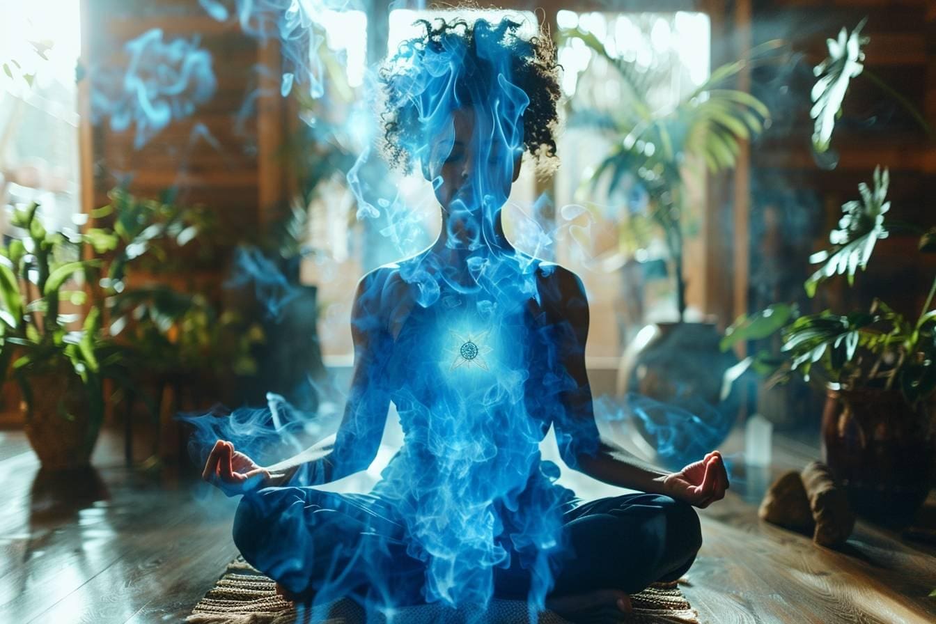 - Chants et mantras : Répétez des mantras liés à ce centre, comme “HAM”, tout en restant attentif à votre respiration.